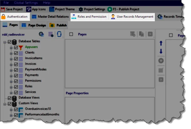 Now that we understand the broader architecture, let’s now walk through the Authentication screen in RadSystems Studio and understand how to quickly set up a secure, functional login system—without writing any code manually.