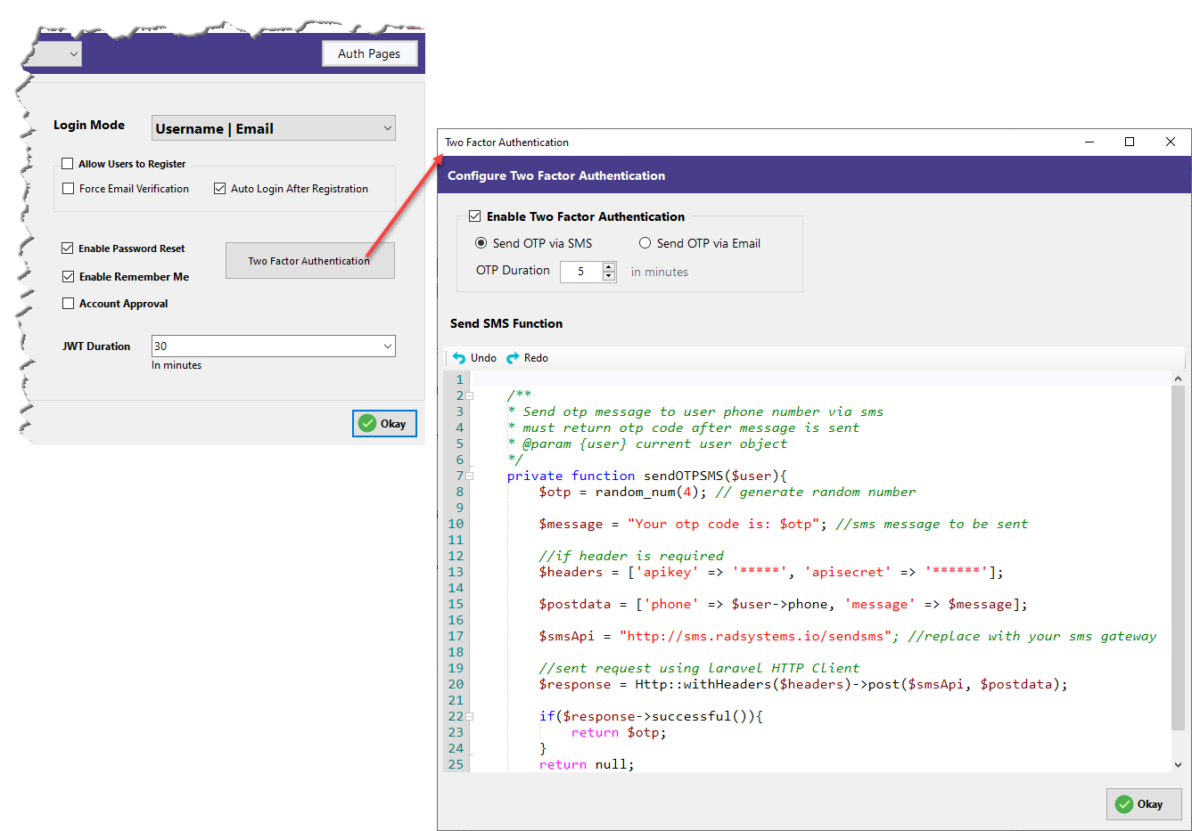 - OTP Duration – Set how long the OTP is valid.
